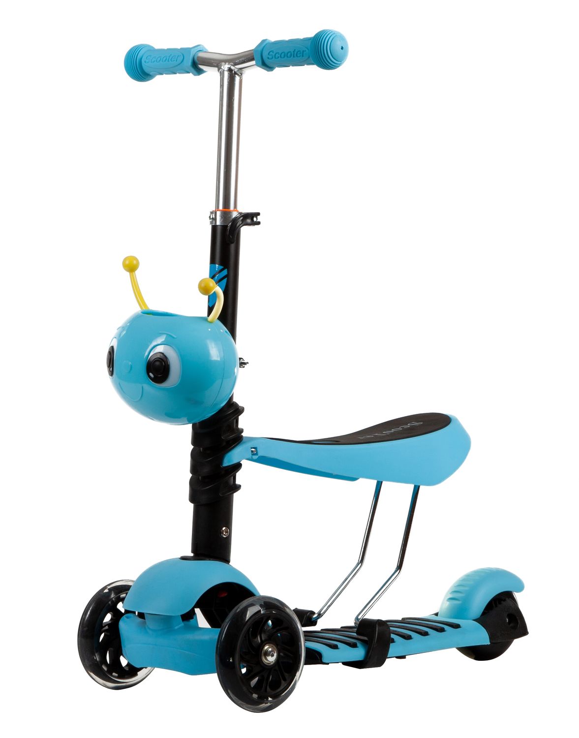 Самокат-трансформер подойдёт для детей от 3 лет. Благодаря уникальной конструкции он может использоваться как обычный самокат или как беговел с удобным сиденьем. Это удобно для малышей, которые ещё не готовы долго стоять на ногах, но хотят кататься. Со временем ребёнок сможет легко перейти на классический режим, тренируя баланс и координацию.