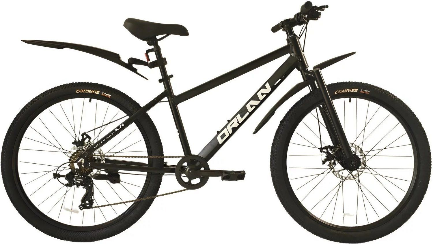 Двойные алюминиевые обода и втулки на промподшипниках гарантируют долговечность и устойчивость колёс. Дисковые механические тормоза работают надёжно и эффективно в любых погодных условиях, повышая безопасность на дороге. Широкие покрышки Compass 26"х2.3 способствуют отличному сцеплению с дорогой и дополнительной амортизации, делая езду более комфортной.