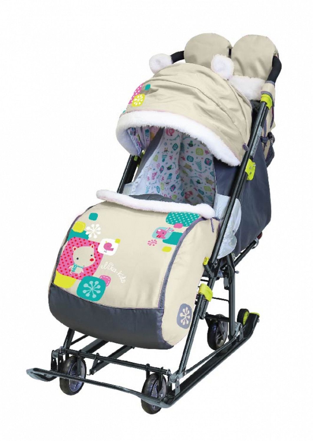 • механизм смены полозьев на колеса позволит удобно перекатить коляску по асфальту