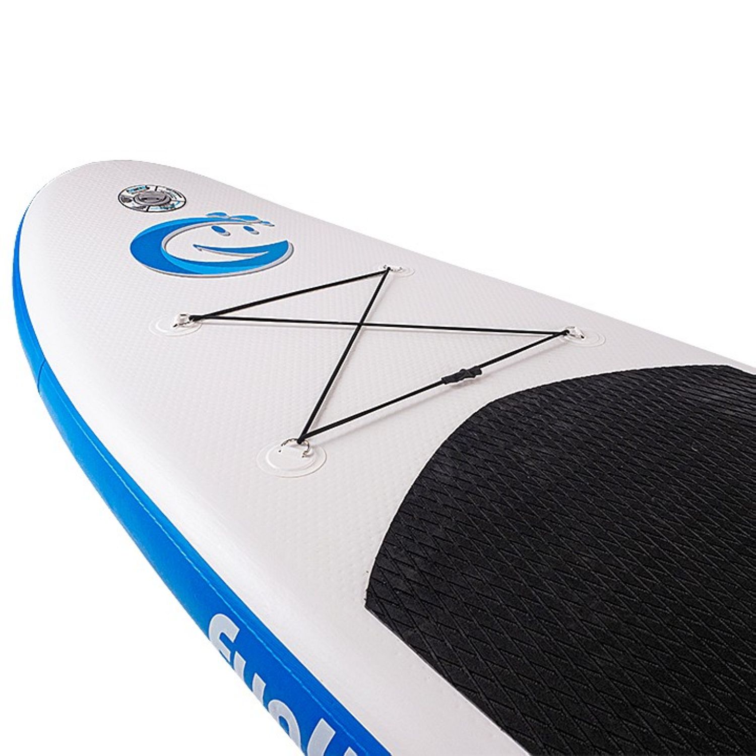 Четырехточечная карго-система (багажник) в носовой части надежно удержит груз на волнах. В передней части доски размещено дополнительное D-кольцо, позволяющее швартовать его у берега или выполнять буксировку по воде.