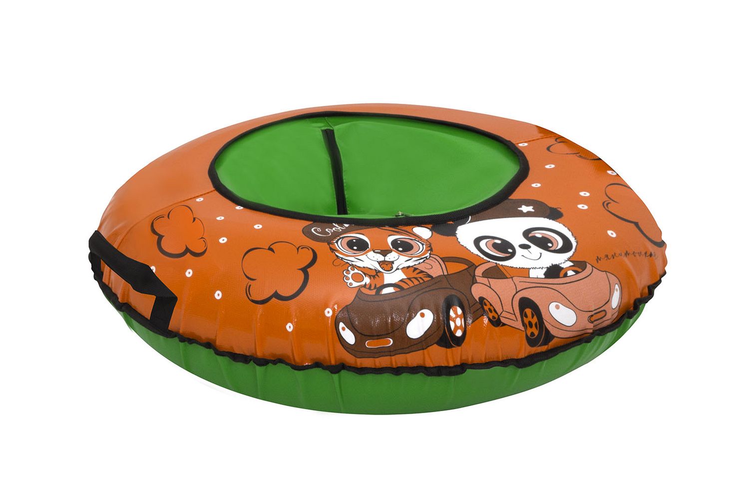 Для удобного катания предусмотрены ручки-держатели и буксировочный трос из усиленной стропы.